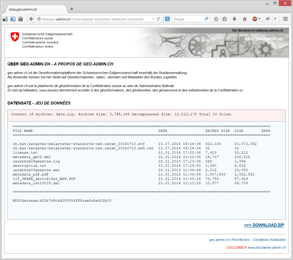 Ein Thema im ÖREB ist der Kataster belasteter Standorte (KbS). In diesem Kataster sind alle Flächen erfasst, die mit Schadstoffen aus Betriebstätigkeit, Ablagerungen oder Unfällen belastet sind.Der KbS wird von Kantonen, Bundesbehörden und den SBB für die jeweils in ihrem Zuständigkeitsbereich liegenden Flächen erfasst. Viele dieser Behörden nutzen die Software Altlast4Web für das Management des KbS. Neben umfassenden Möglichkeiten zur Datenbearbeitung und der Abwicklung komplexer Geschäftsprozesse unterstützt die Software auch die Publikation der Daten für verschiedene Adressaten. Mit der aktuellen Version können aus Altlast4Web auch die Daten gemäss Anforderungen des ÖREB im INTERLIS-Format publizeirt werden. Automatisiert werden jede Nacht die aktuellsten Daten zusammen mit den relevanten Gesetzestexten publiziert. Für die Bundesämter für Vekehr BAV und Zivilluftfahrt BAZL als Beispiele werden die Daten auf die Geoinformationsplattform der Schweizerischen Eidgenossenschaft geo.admin.ch kopiert. Dort stehen sie zum Download sowie zur Integration mit anderen Themen zur Verfügung.